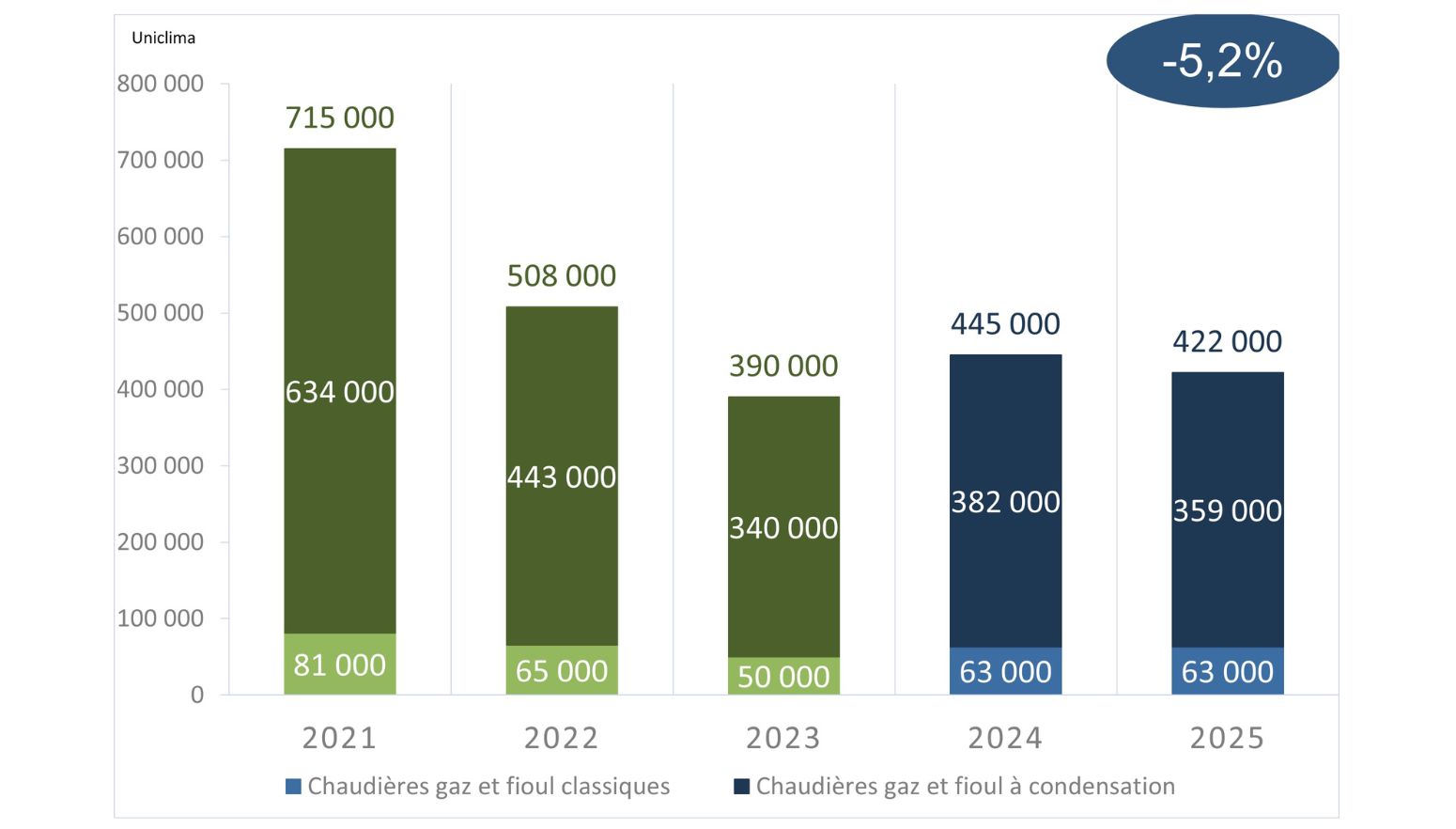 L'année 2025 marque un tournant réglementaire définitif. Sous l'effet de la RE2020, l'installation de chaudières thermiques dans le neuf est désormais quasi impossible. Le marché est donc devenu un segment de pur remplacement.
