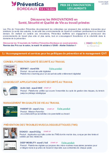 Événement phare dédié à l’amélioration des conditions de travail, le congrès-salon Préventica ouvre ses portes du 14-16 octobre 2025 au Parc des expos de Bordeaux. Réunissant experts « engagées et influentes », professionnels et décideurs du secteur privé et public, la manifestation permettra de découvrir les dernières innovations, échanger sur les bonnes pratiques et trouver des solutions adaptées aux défis actuels en matière de santé, sécurité et qualité de vie et des conditions de travail.
