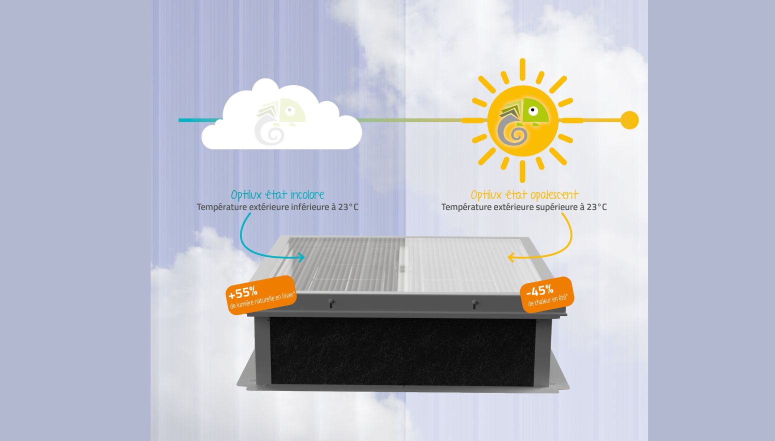 Le spécialiste du désenfumage naturel et de l’éclairement zénithal enrichit son offre avec une solution innovante à contrôle solaire passif baptisée Optilux. Cette dernière entend concilier éclairement naturel, confort d’été et performance énergétique dans les bâtiments tertiaires et industriels.
