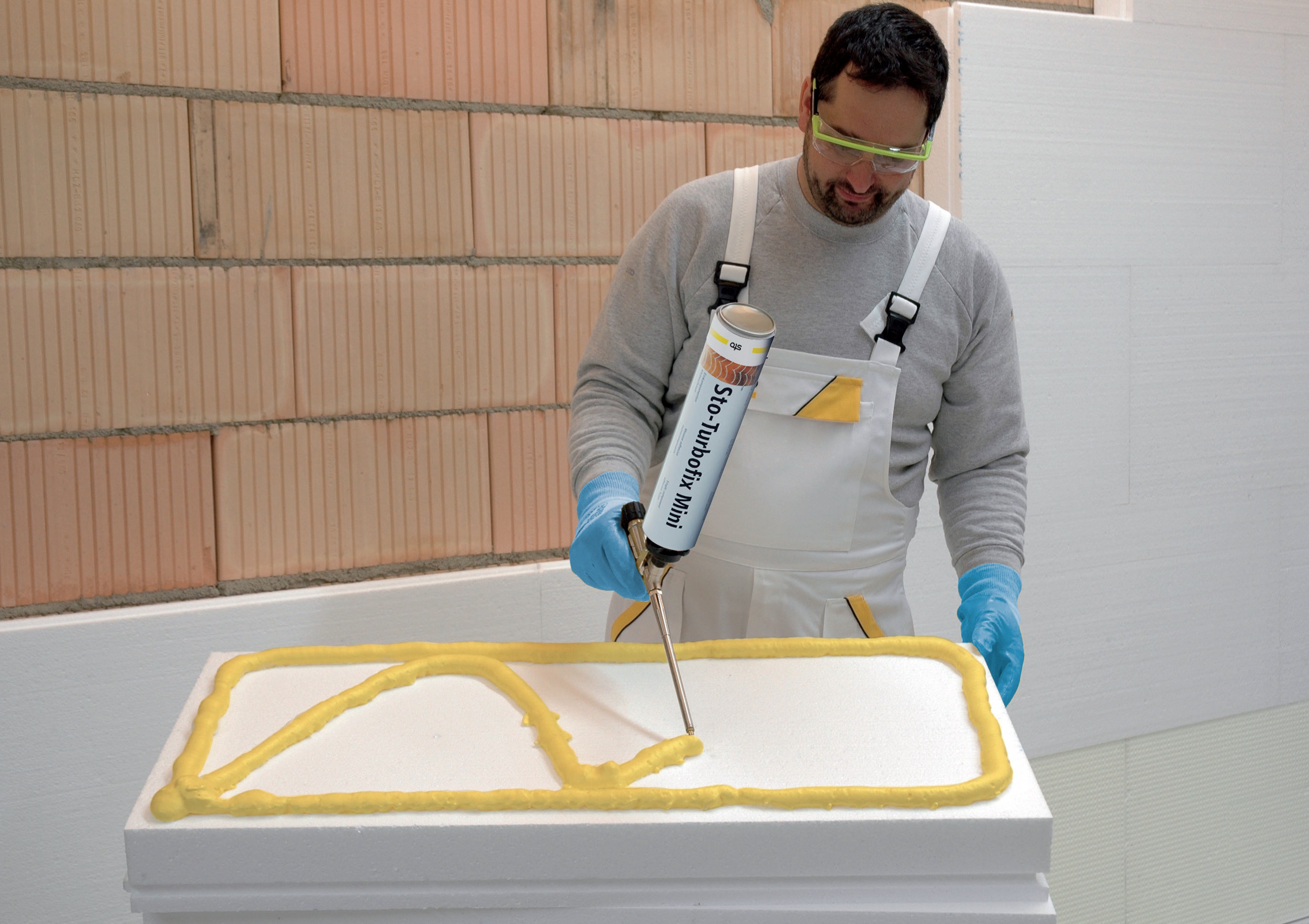 Le chef de produits Accessoires de Sto France, Thibault Lelong, explique : « Les machines de découpe et de ponçage répondent aux contraintes de nos différents isolants, tandis que nos produits comme Sto-Turbofix Mini et StoLevell Novo réduisent les efforts de manutention et accélèrent la mise en œuvre. C’est une approche globale qui a pour objectif (…) d’augmenter la productivité sur chantier et de préserver la santé des équipes ». Turbofix Mini est une mousse PU expansive en cartouche qui facilite le collage du PSE en offrant une adhérence rapide (2 h) le tout dans une cartouche qui équivaut à 25 kg de mortier-colle minéral. StoLevell Novo est, lui, un mortier hydraulique qui s’emploie pour le collage de la laine de roche ou du PSE, et en tant que sous-enduit de marouflage. Son avantage ? La légèreté, avec un sac de 15 kg au lieu de 25, ce qui réduit le risque pour le dos des compagnons.