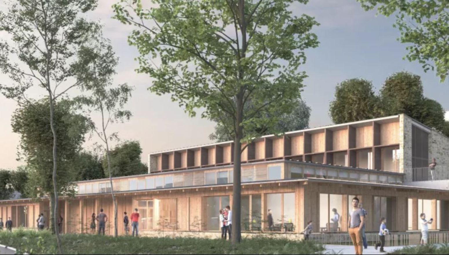 • École de Saint-Fiel (2e prix) : un « village d’enfants » en ossature bois, structuré autour de cinq pavillons reliés par une rue intérieure. Pédagogie ouverte, ventilation double flux, chaud-froid simultané à récupération d’énergie et gestion intelligente via GTB cloud.