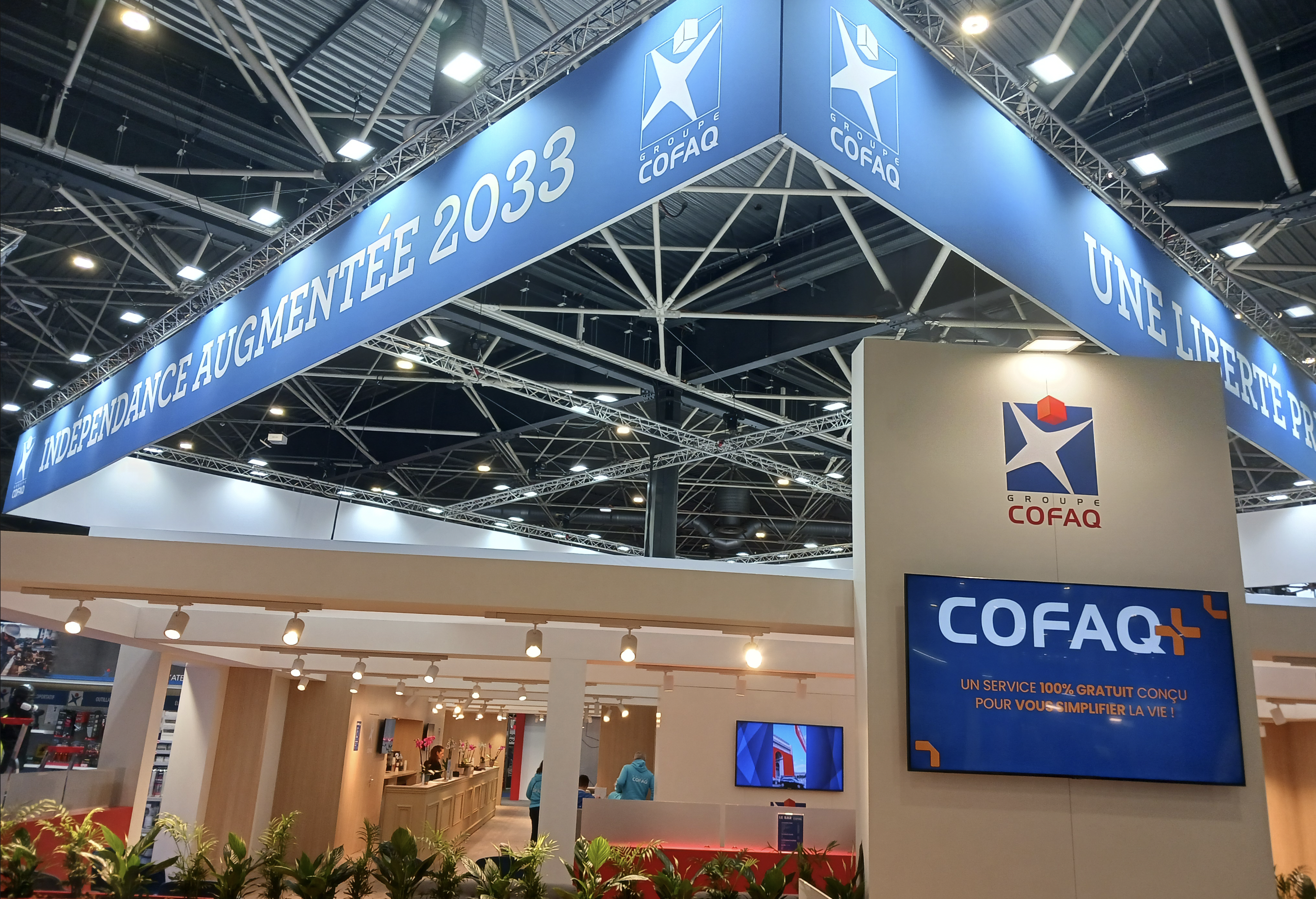 Visible des quatre coins du hall 6, l’Agora Cofaq a aussi permis de faire passer quatre messages. Avec ces formules affichées sur des bannières ceinturant cet espace : “Une liberté préservéeˮ, “Des moyens renforcésˮ, “Une performance amplifiéeˮ, mais aussi “Indépendance augmentée 2033ˮ – en écho à la nouvelle feuille de route du groupement qui entend doubler son chiffre d’affaires achats (à 1 Md€) d’ici à sept ans vs 2024.