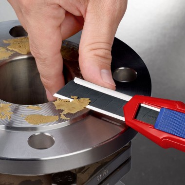 L’autre innovation n’en semble pas vraiment une car il s’agit d’un cutter, utilisé par de nombreux professionnels au quotidien. Pour se démarquer, Knipex lance sur le marché le CutiX, un cutter « universel » pour répondre aux problématiques soulevées par les utilisateurs de ce genre d’outil : la chute de la lame du support ou le pliage de la lame lors d’une coupe. Le cutter Cutix Knipex est équipé d’un barre de stabilisation (un guide) en acier trempé extensible. Ce guide se déplie séparément de la lame, grâce à une deuxième glissière qui se situe derrière la glissière de la lame. Ce guide peut être utiliser en cas de besoin de rigidité et de stabilité dans la découpe. Le risque de casser la lame est évité. Autre avantage mis en avant par Knipex : le remplacement rapide de la lame grâce à un bouton situé sur le cutter.
