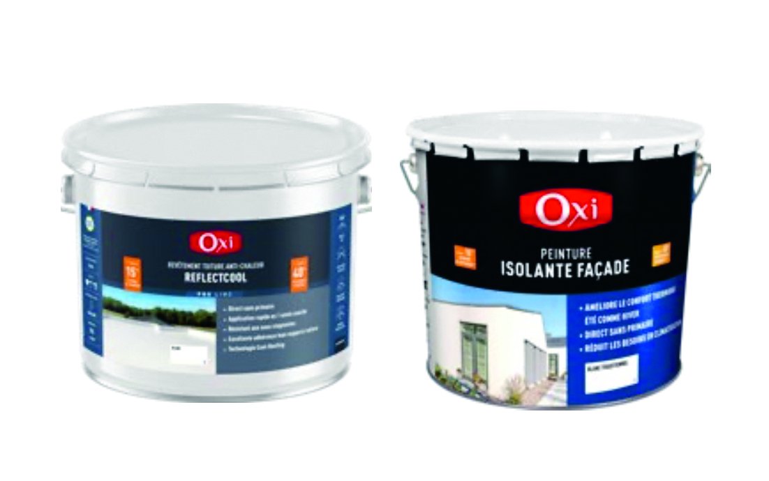 Développée par le groupe Durieu, la Gamme Thermique Oxi comprend Reflectool et la Peinture Isolante Façade. Reflectool est un revêtement de cool roofing formulé à base de résines techniques, applicable en monocouche, sans primaire sur membranes bitumeuses ou EPDM, y compris en zones de rétention d’eau. Facile à nettoyer, il conserve longtemps sa teinte blanche et, par conséquent, son pouvoir réfléchissant. La Peinture Isolante Façade en phase aqueuse, s’applique, elle, sur la plupart des supports correctement préparés (ciment, béton, enduit, crépis) et affiche un SRI (indice de réflectance solaire) de 108, une conductivité thermique de 0,0491 W/m·K et intègre 20 % de charges recyclées.